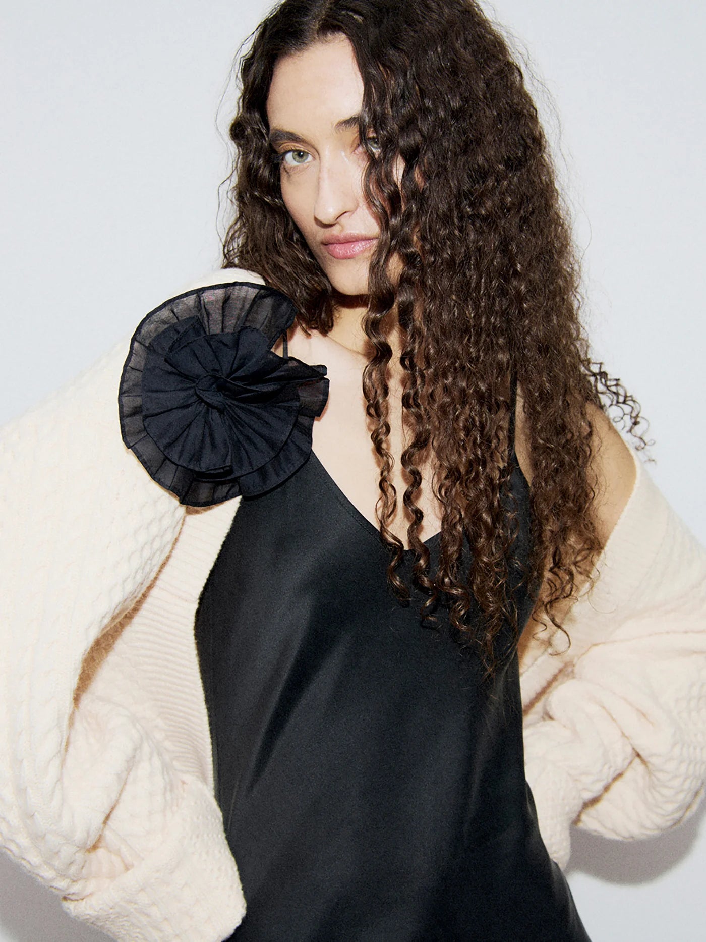 A lightweight statement designed to personalise any look. Our Organza Brooches are crafted from a cotton–silk organza blend 79% cotton 21% silk organza that holds shape while still feeling soft and airy. The fabric blends crisp cotton with the subtle sheen of silk, creating a semi-sheer finish with gentle structure. Pin it to a slip, blazer, or bag - a simple way to add depth and texture.