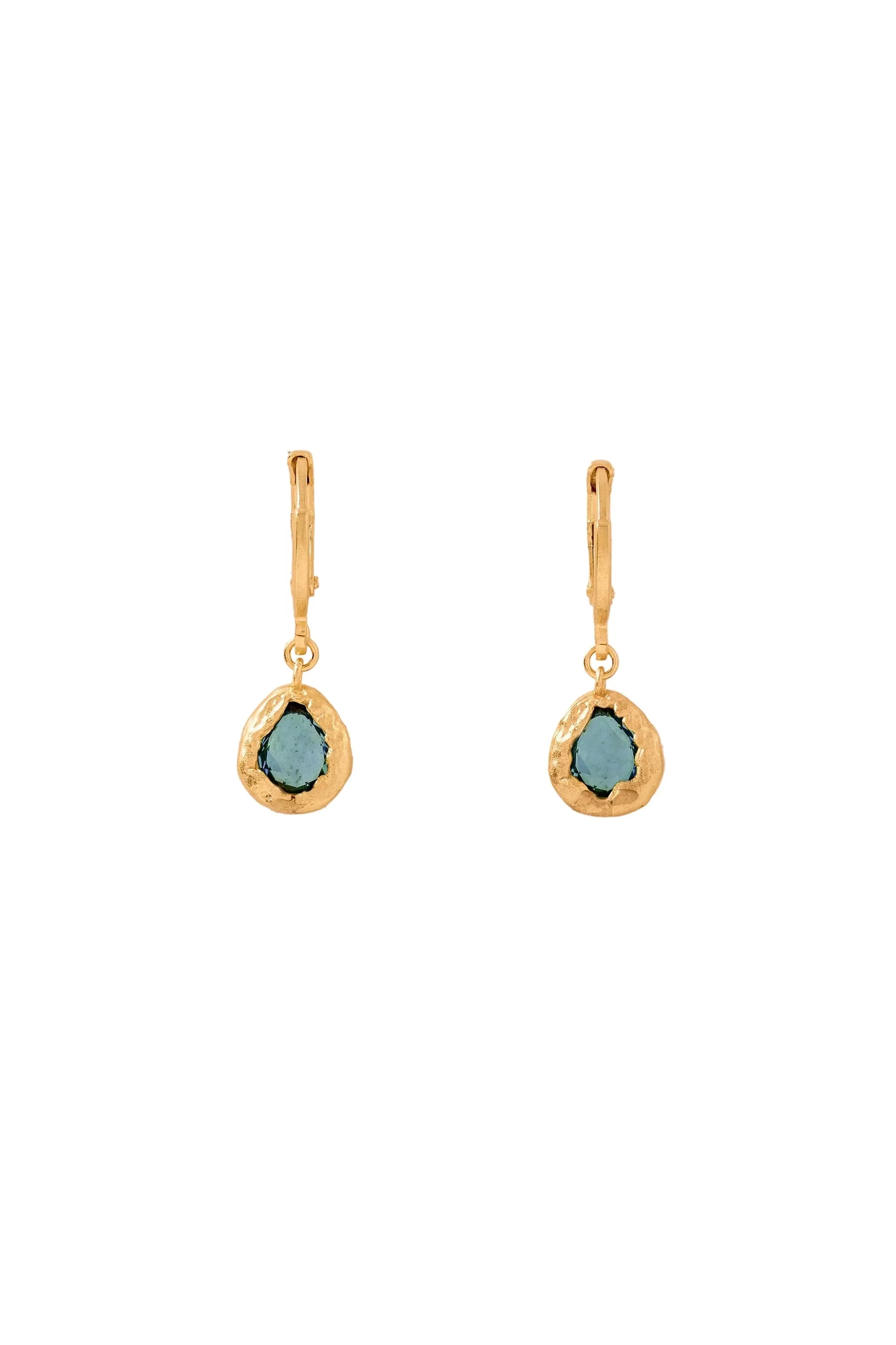 Set in a textured gold nest, the dainty stones of our Lysia earrings capture nature’s ever-changing beauty. From serene seas to warm sunsets, explore the hues of the Mediterranean landscape.