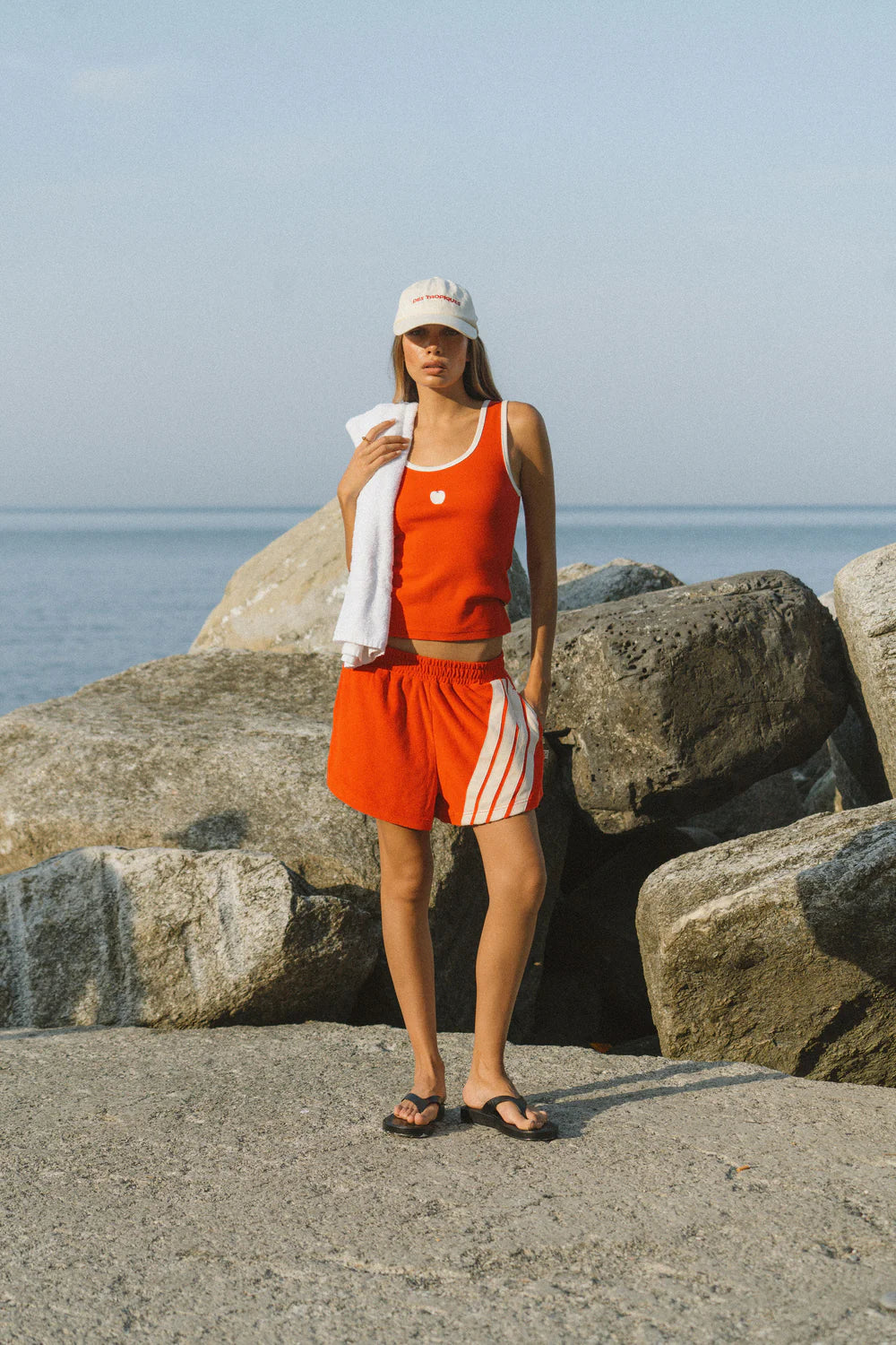 Embrace the warmer days ahead with our Manzana Rib Tank, designed for comfort and effortless summer style. Craftedfrom fine cotton rib fabrication, this tank features our chic apple embroidery on the front. Designed to stay timeless in your wardrobe.