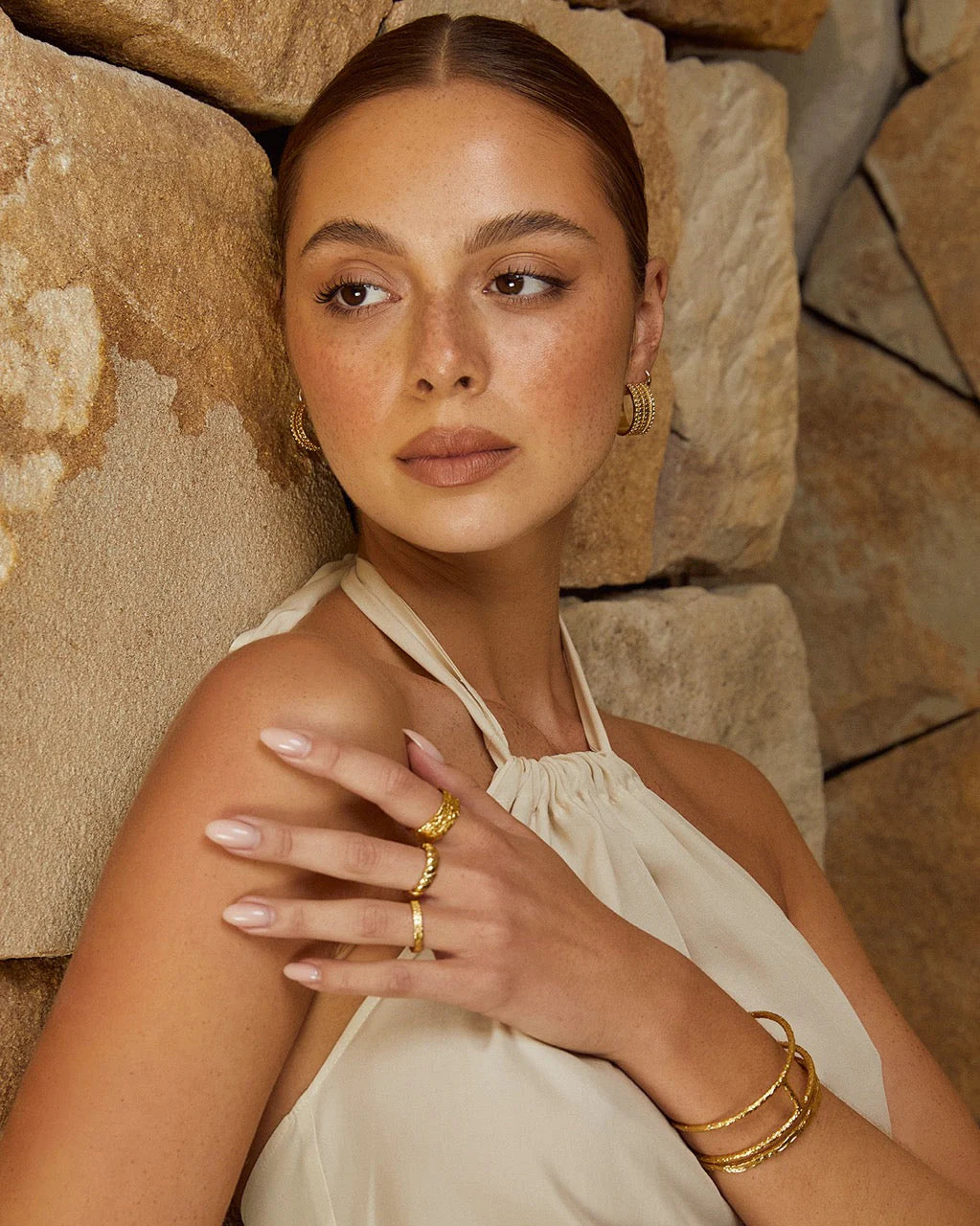 Double your cuff game with our cool Maya Cuff. With a statement feel and beautifully crushed gold texture, Maya is sure to stand out no matter the occasion