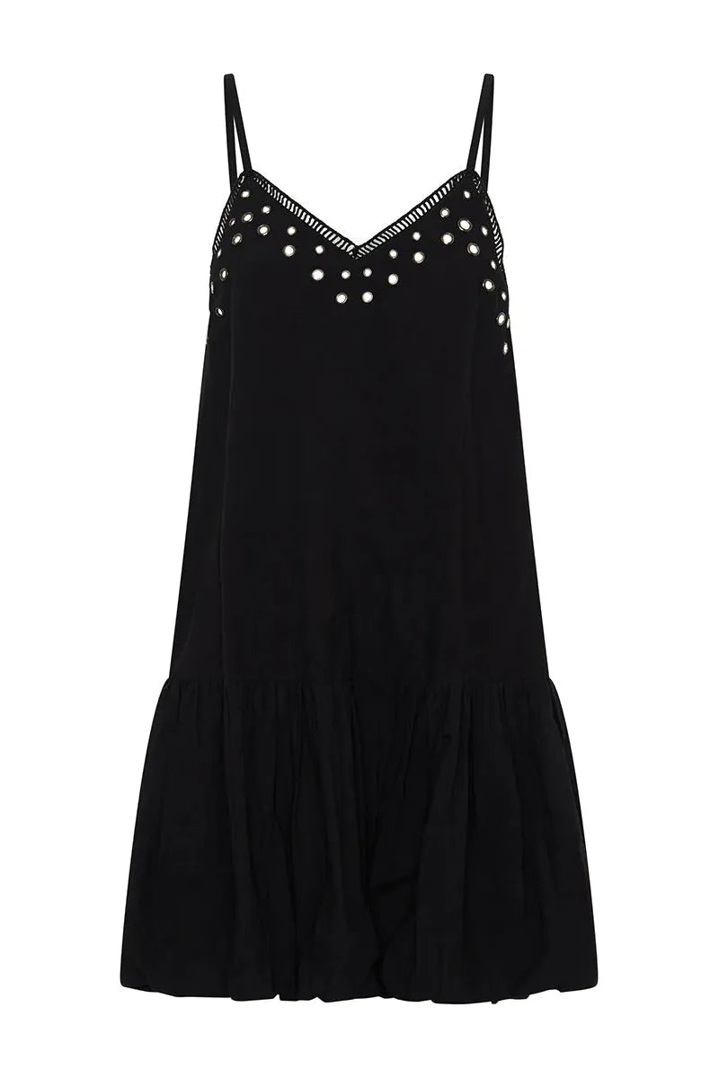 Eyelet Cotton Bubble Hem Mini Dress Black