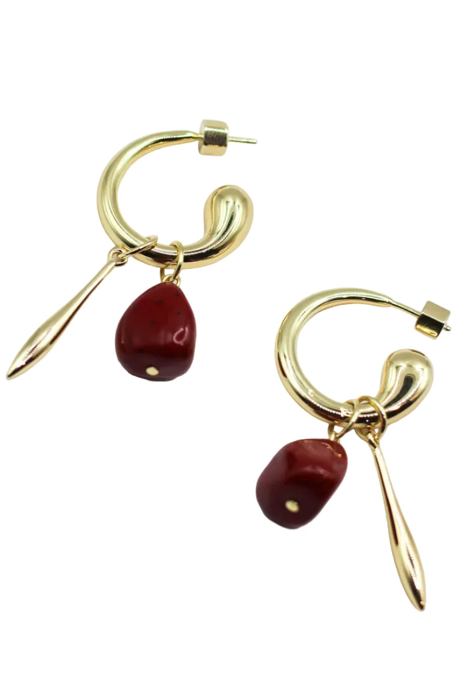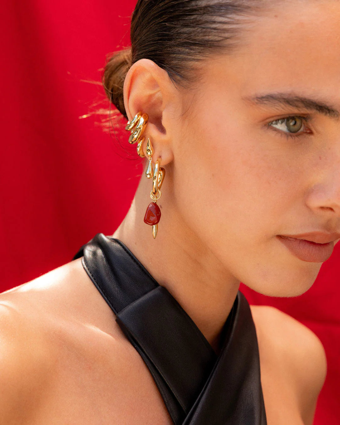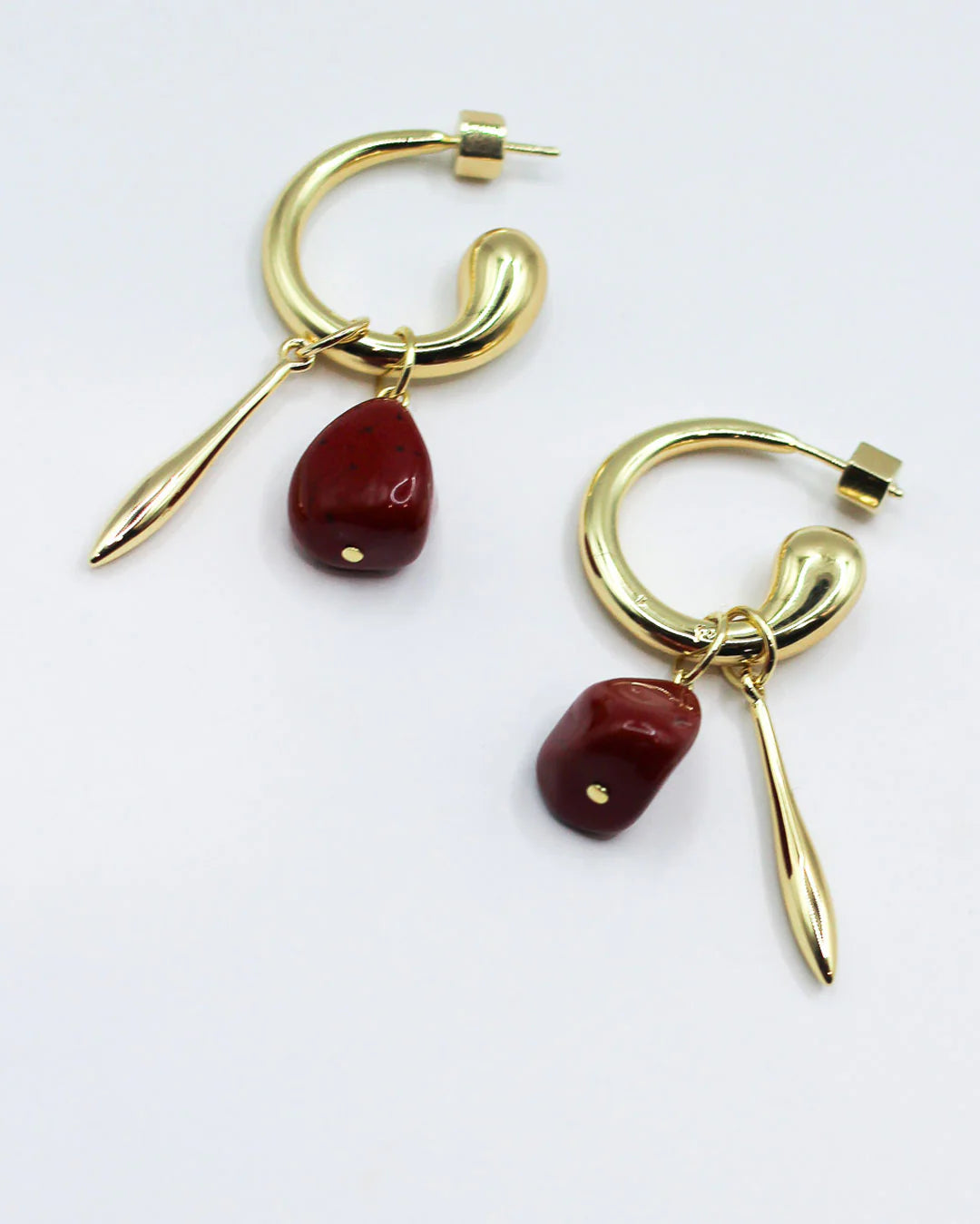 These statement earrings are also adorned with removable charms of a red jasper gemstone and droplet hardware to create an eye-catching styling piece.