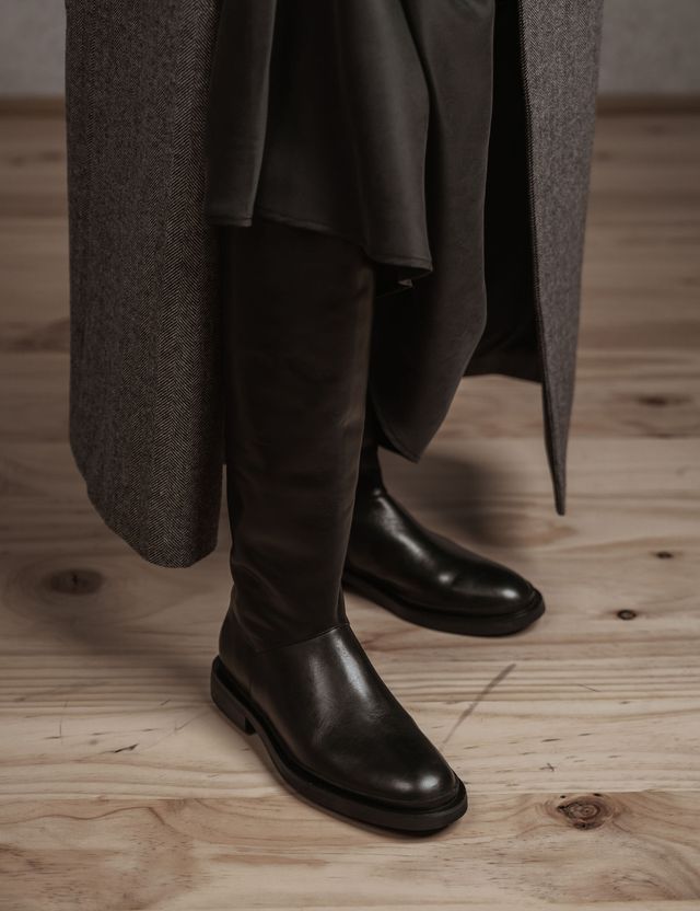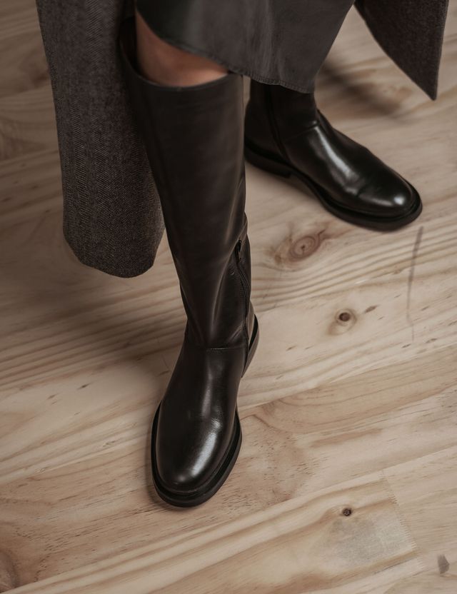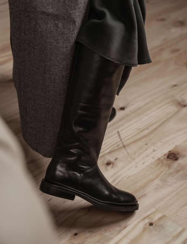 A refined and timeless staple, the riding boot blends elegant design with functional craftsmanship. Featuring a sleek, knee-high silhouette, a sturdy sole, and premium leather construction, it embodies sophistication while offering comfort and durability. The riding boot seamlessly merges classic heritage with modern versatility.