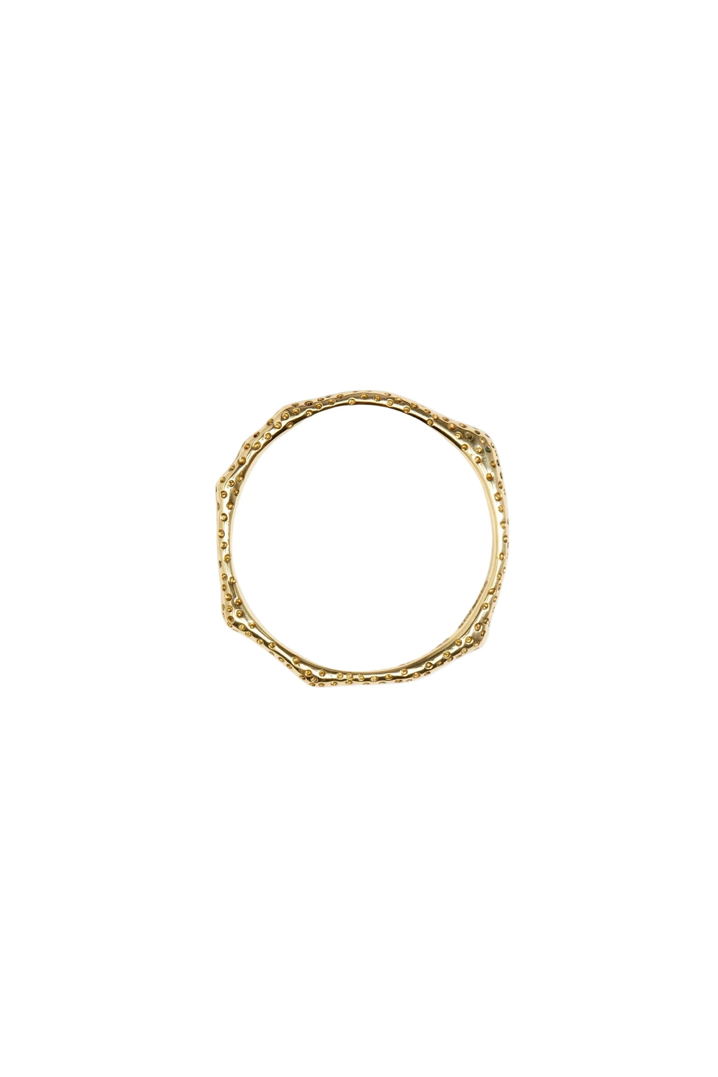 Our Coral Bangle is an intricately textured bangle, with accented points around its band. Referencing the natural world, this organic shape is designed to emulate coral found in our seabeds. When combined, it adds immediate detail to any bangle stack.