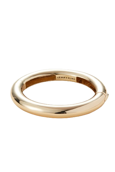 A super bold, tubular bangle to wear on its own or finish your arm stack. This wide, custom bangle opens and closes with a hinge and tab lock closure. Listen for a "click" to ensure tab is locked properly. Note: this design wears best when the closure is secured on the inside of your wrist. Finished in high-polish gold.