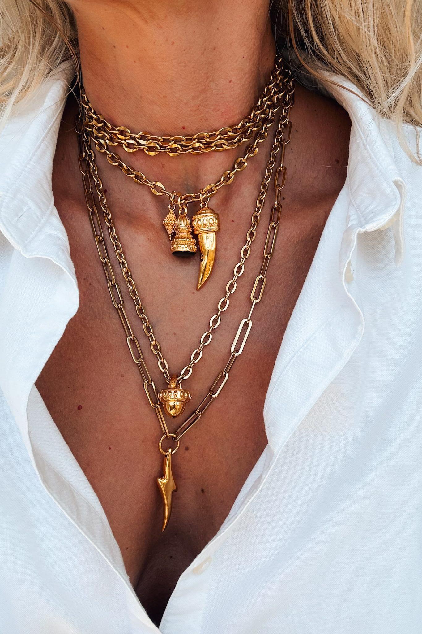 Rock Style Statement Chunky Chain Double Necklace Gold