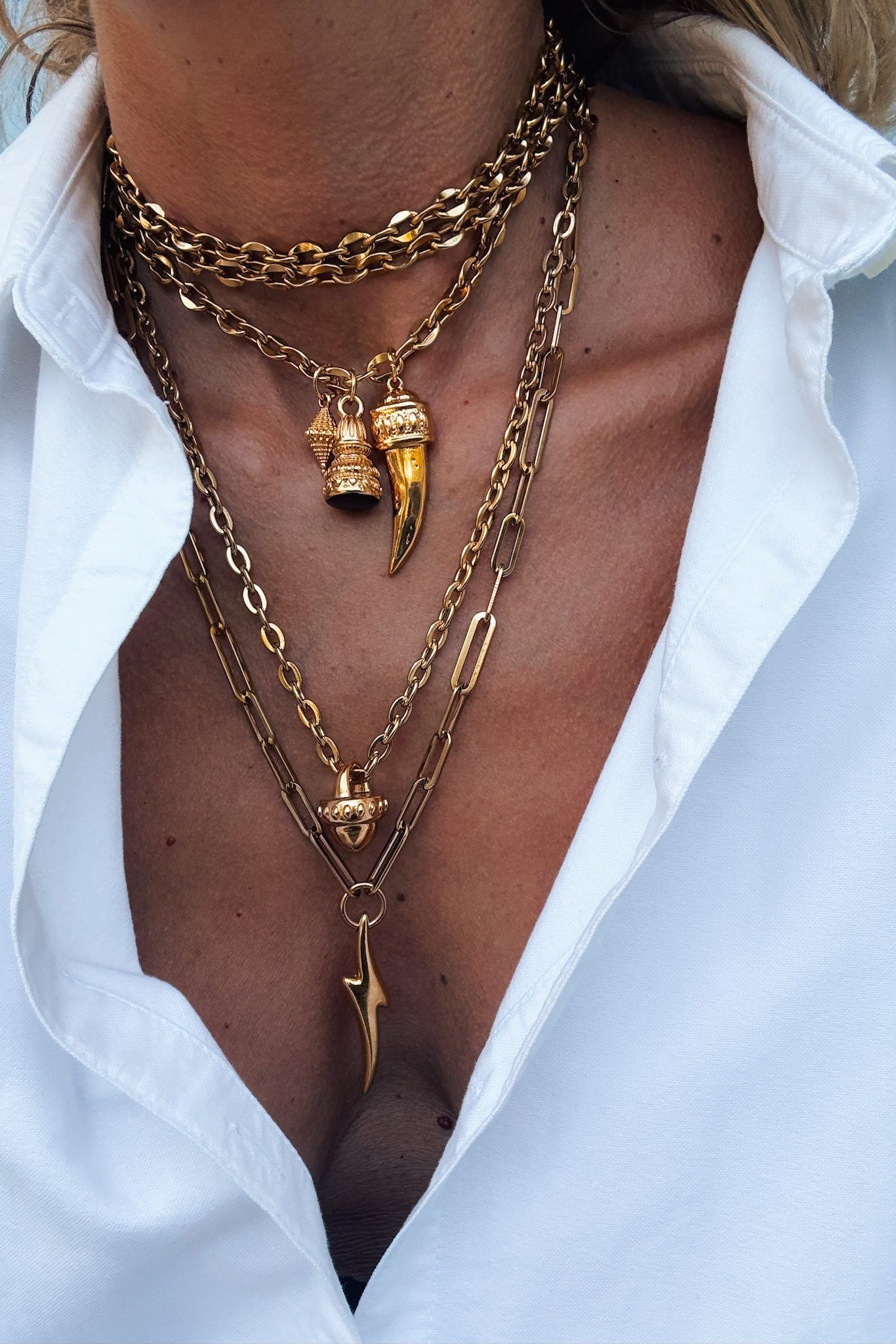 Rock Style Statement Chunky Chain Triple Choker Gold