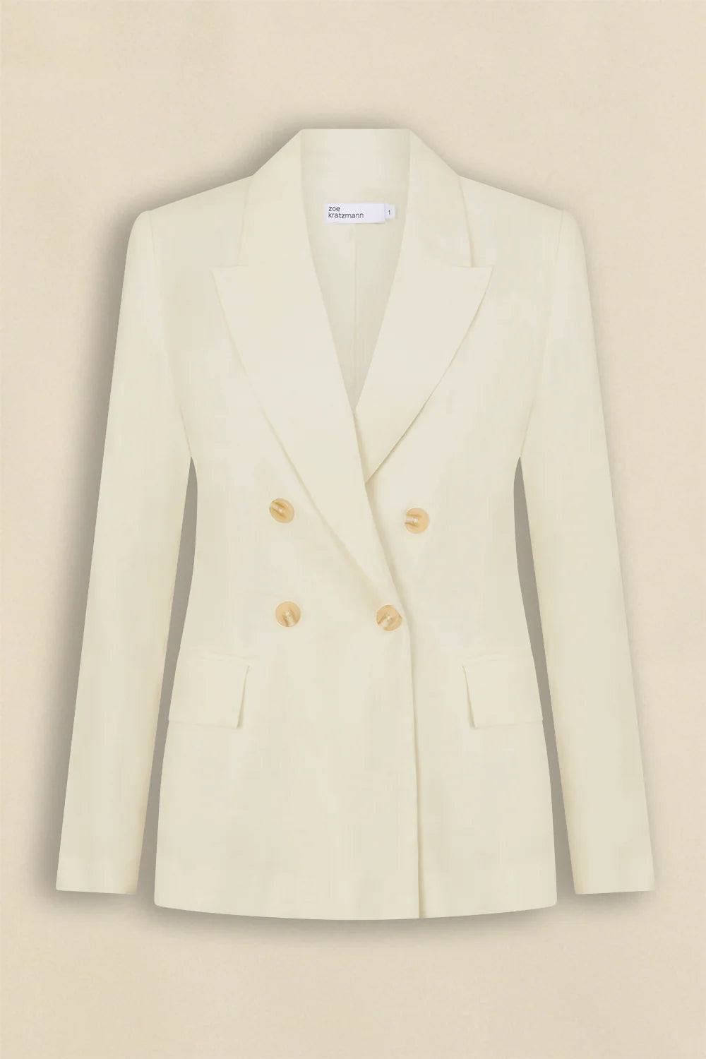 crafted in a creamy alabaster, the nuance jacket blends polished tailoring with relaxed ease.